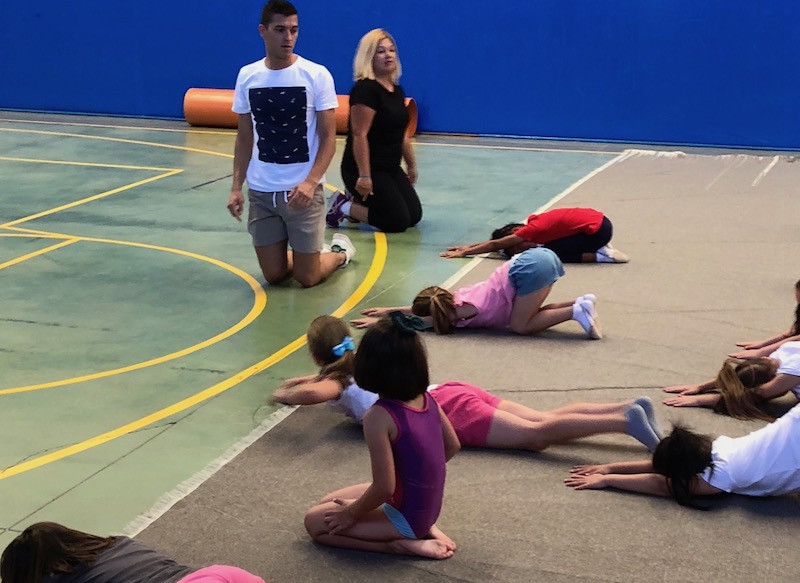 El gimnasta ha podido ver de primera mano la gran cantera que tiene el centro, compartiendo impresiones y realizando ejercicios con todos los chavales.
