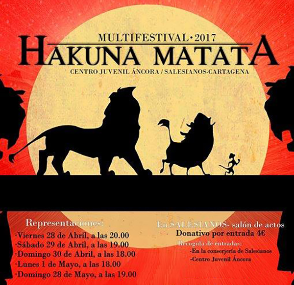 El Multifestival 2017 que organiza el centro juvenil Áncora se titula este año ‘Hakuna Matata’, basado en la popular película y musical que tiene protagonista a Simba, y se representará del viernes al lunes próximo y el 28 de mayo.