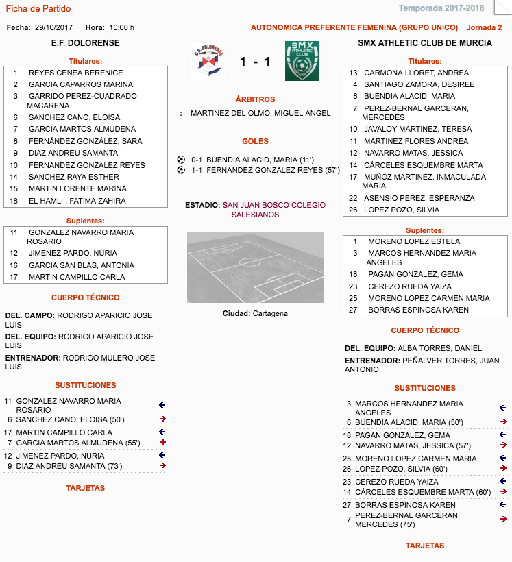 El equipo de la Preferente Autonómica femenina empata en el campo San Juan Bosco ante el Athletic Club de Murcia, con lo que, al igula que sucedió en la primera jornada de la temporada, salda su compromiso con un reparto de puntos.