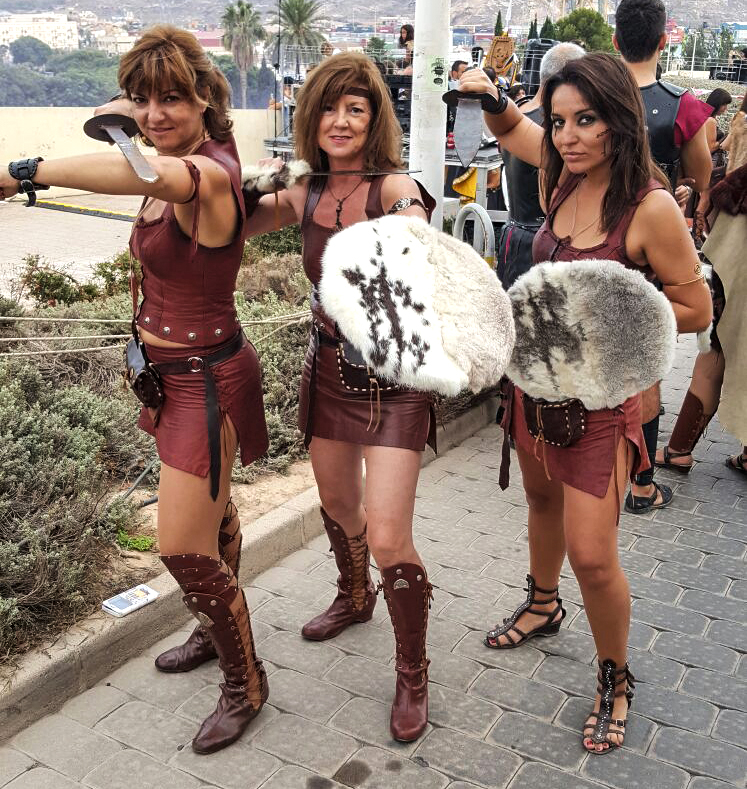 Las chicas son guerreras. Hortensia, Isabel y Ana, vecinas de la barriada de San Cristóbal, el día de la gran batalla por la conquista de Qart-Hadast con las Tropas de Asdrúbal.