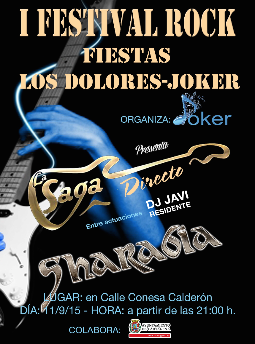 Pub Joker organizará el 11 de septiembre, a partir de las nueve de lanoche, la primera edición del festival de rock Fiestas de Los Dolores-Jóker, que tendrá las actuaciones de los grupos La Saga y Sharabia, además de DJ Javi Residente. Organiza el propio establecimiento de la calle Conesa Calderón de Los Dolores, en una actividad que tendrá lugar durante los festejos dolorenses y en el que colabora el ayuntamiento de Cartagena.