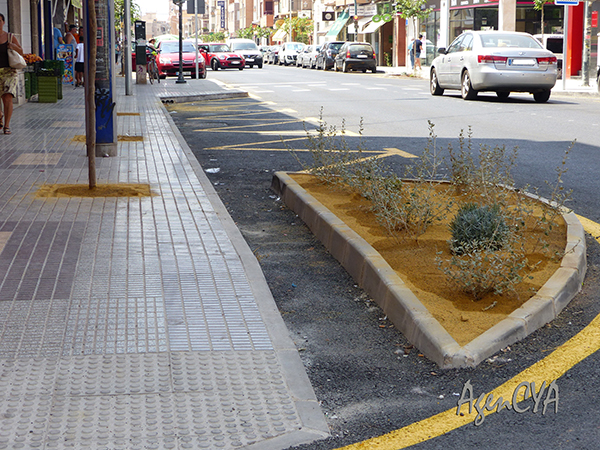 Los trabajos en las calles Alfonso XIII y Floridablanca de Los Dolores siguen avanzando, figurando entre las últimas novedades la colocación de dos tipos nuevos de plantas en las pequeñas jardineras de los cruces con las calles laterales y el inicio del pintado de la calzada.