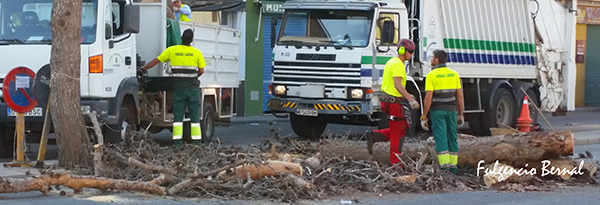 Escena de poda de árboles en la antigua N-301, a la altura de la barriada de San Cristóbal.