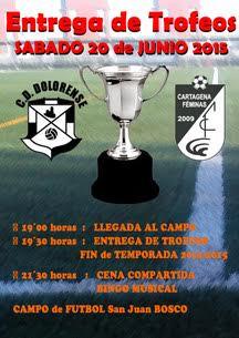 La temporada ha finalizado y el Club Deportivo Dolorense lo celebra entregando sus trofeos el sábado, 20 de junio, a las 19.30 horas, en el campo de San Juan Bosco en Salesianos. A las 21.30 horas se celebrará la cena compartida y un bingo musical.