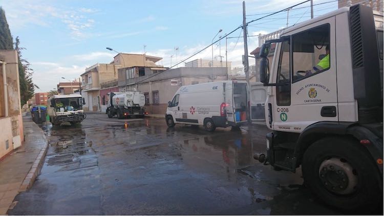 El programa de urgencia preparado por el ayuntamiento de Cartagena ha comenzado a aplicarse hoy en Los Dolores en la calle Jardines y continuará martes y miércoles por la plaza de la Iglesia y la plaza Juan Ramón Calero, mientras que jueves y viernes se extenderá a la arteria principal del barrio, la calle Alfonso XIII.