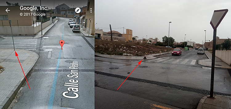 Una lectora de este diario se ha dirigido a nuestro ‘Buzón de los lectores’ para denunciar públicamente las circunstancias que rodearon a un accidente que tuvo lugar en diciembre, en el cruce de las calles Pirineo y San Pedro de Los Dolores, en la que era una de las implicadas. “La calle San Pedro siempre ha tenido preferencia, como se observa la imagen que adjunto de Google Maps en la que aparece la señal de ceda el paso. Sin embargo, el día en cuestión no estaba y la conductora que venía por esa vía entendió que tenía preferencia. Yo pensé lo mismo y tuvimos un accidente. Llamamos a la Policía Local, que tuvo que llamar a la central porque no sabía cómo actuar. Al final determinaron que la culpa era mía, pues venía por la calle San Pedro a la altura del centro de día y debía ceder el paso a la derecha", indica.
